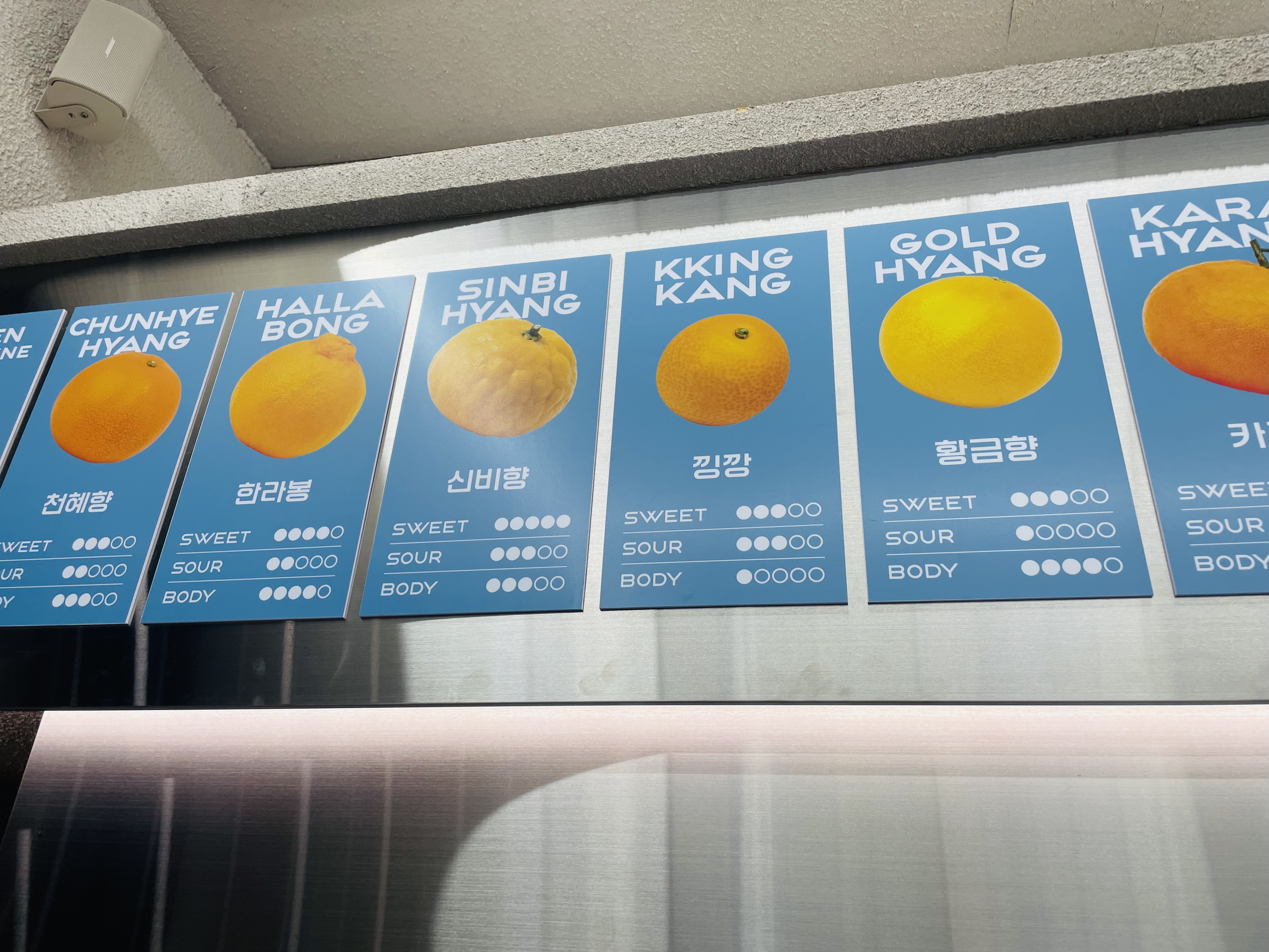 - 운영 형태: 스탠딩 테이블, 감귤 음료 & 디저트 전문