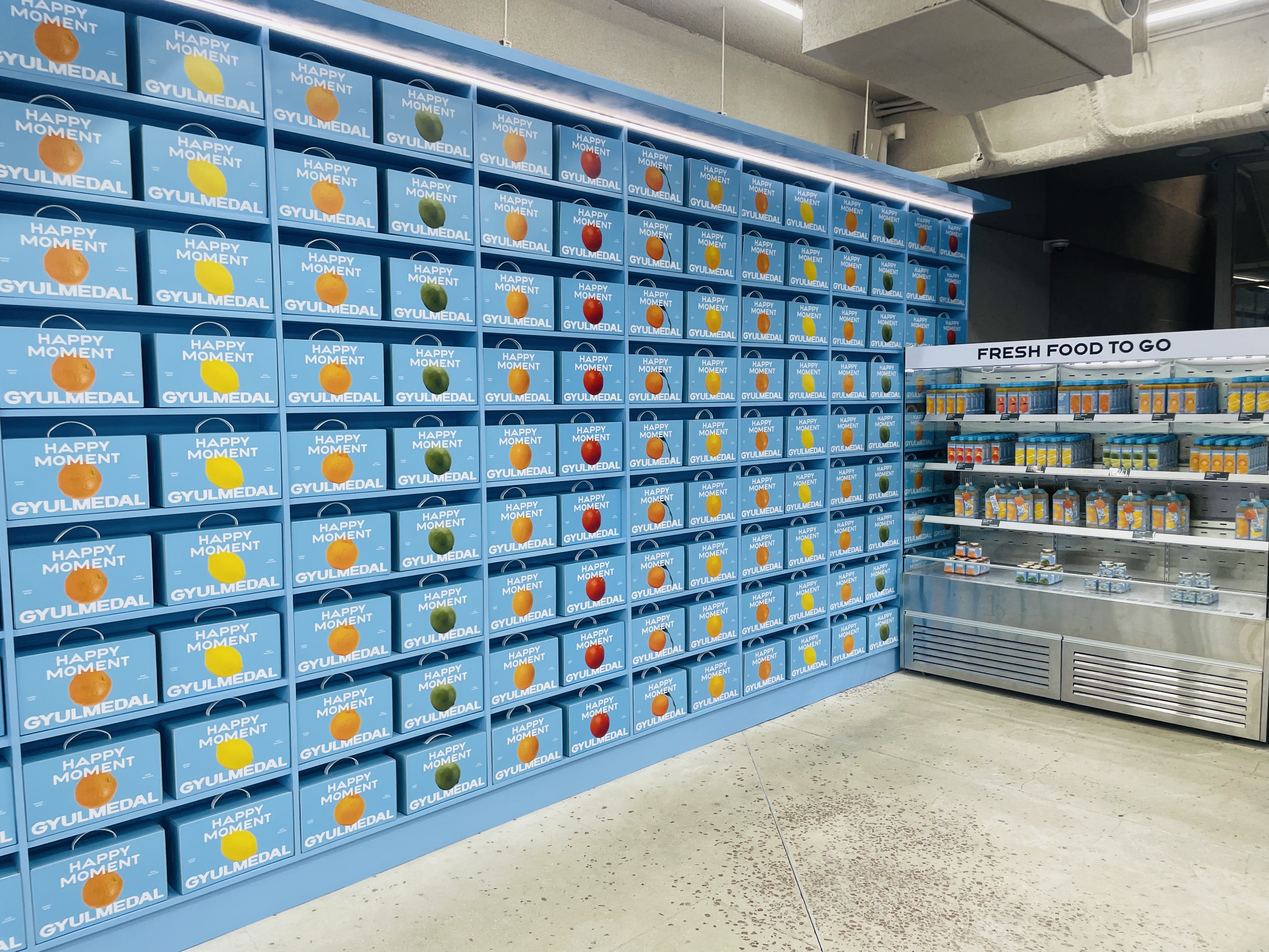 ‘GYULMEDAL’ 로고가 박힌 블루 패키지는 단순히 음료를 담는 박스를 넘어, 제주 감귤을 힙한 디자인 오브제로 재탄생시켰습니다.