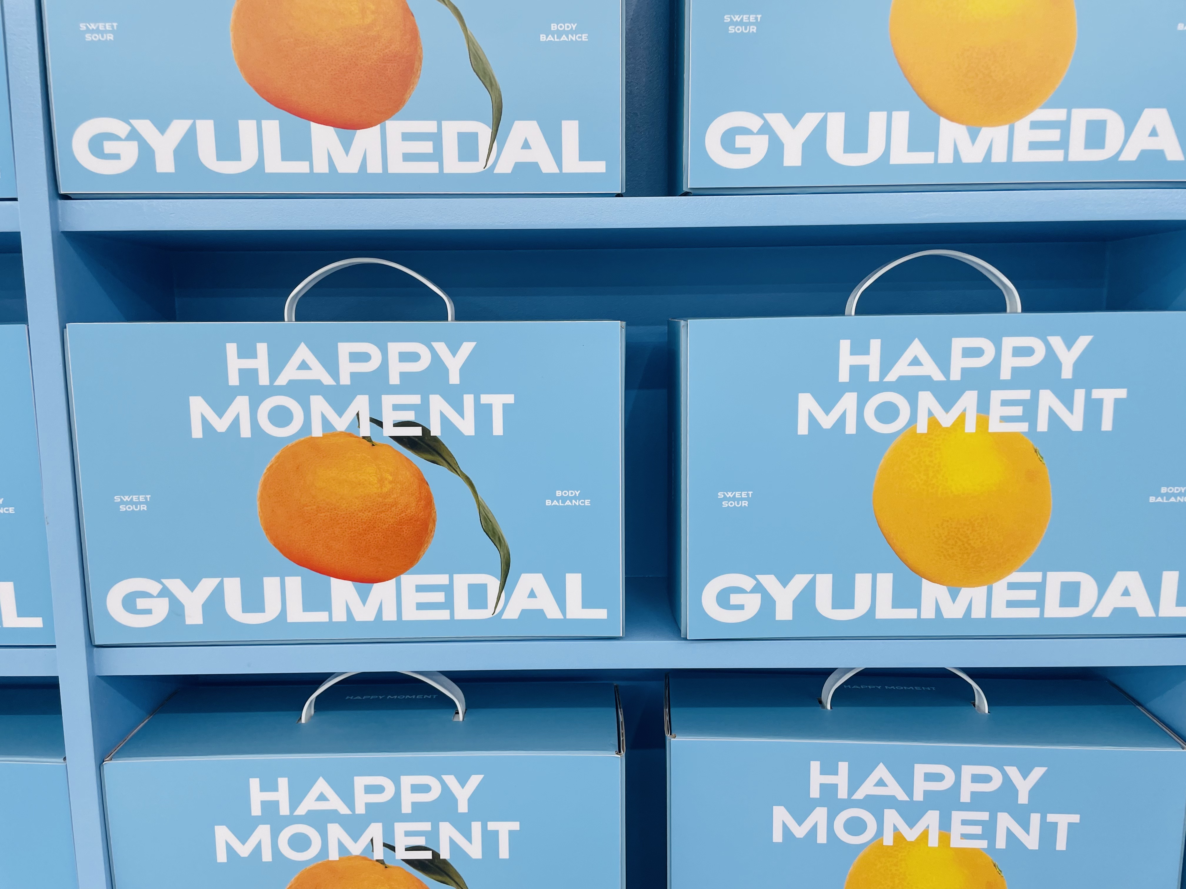 외관부터 ‘HAPPY CITRUS MOMENT’라는 문구와 귤 모티브가 시선을 사로잡습니다.